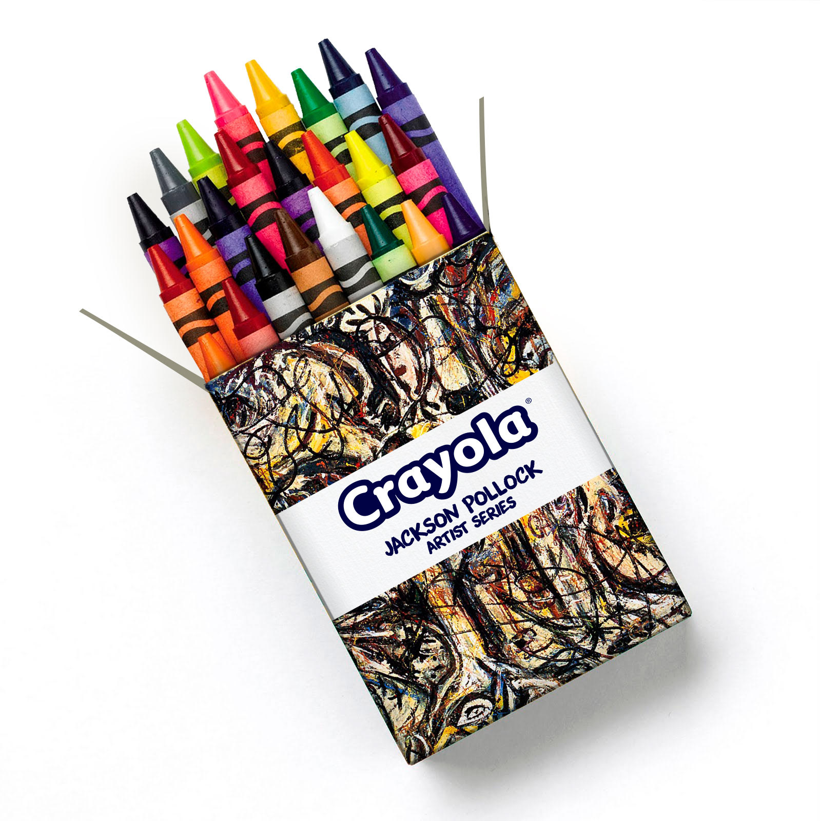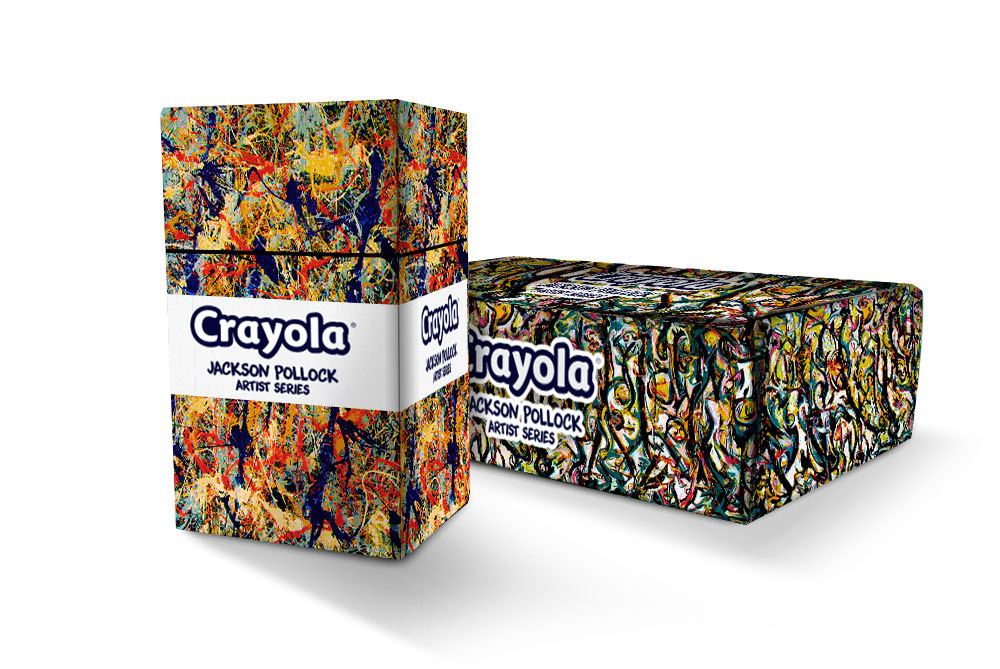 Case study on a special "Artist Series" promotional package for Crayola. I chose Jackson Pollock, to focus on his splatter painting to represent what little kids do when they scribble with crayons.